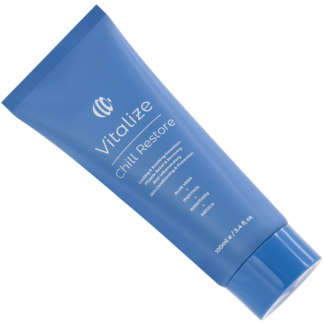 Viatlize Chill Restore is a cooling recovery cream designed to soothe your sore muscles, reduce inflammation, and help you relax.