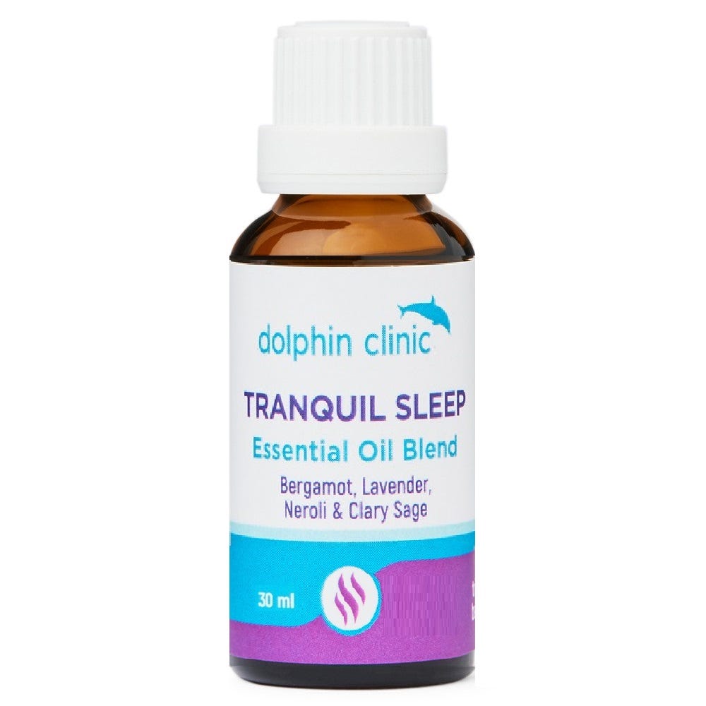 Dolphin Clinic Tranquil Sleep Essential Oil Blend is a carefully crafted combination of Bergamot, Lavender, Neroli and Clary Sage essential oils.
