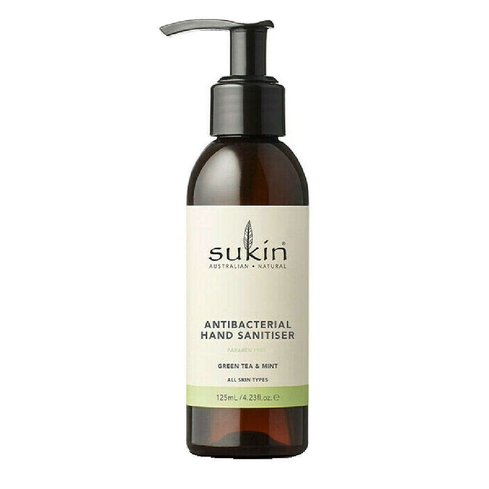 Sukin’s Natural Antibacterial Hand Sanitiser Gel kills 99.9% of germs leaving hands clean and refreshed without water.